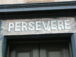 A good example is the sign at the former shop shown above, and right. Despite ‘Persevere’ being the former burgh of Leith (and Hibernian FC’s) motto, it turns up a long
