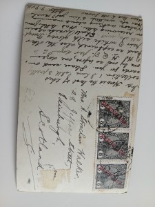 What does the other side tell us? Well, most obviously, the postcard is from Portugal. The stamps, written across with ‘Republica,’ tell a story in themselves: the Republic had been declared less than two years before, on 5th October 1910. The picture on them is of the deposed king – the new Government were keen to save a bit of cash, obviously.